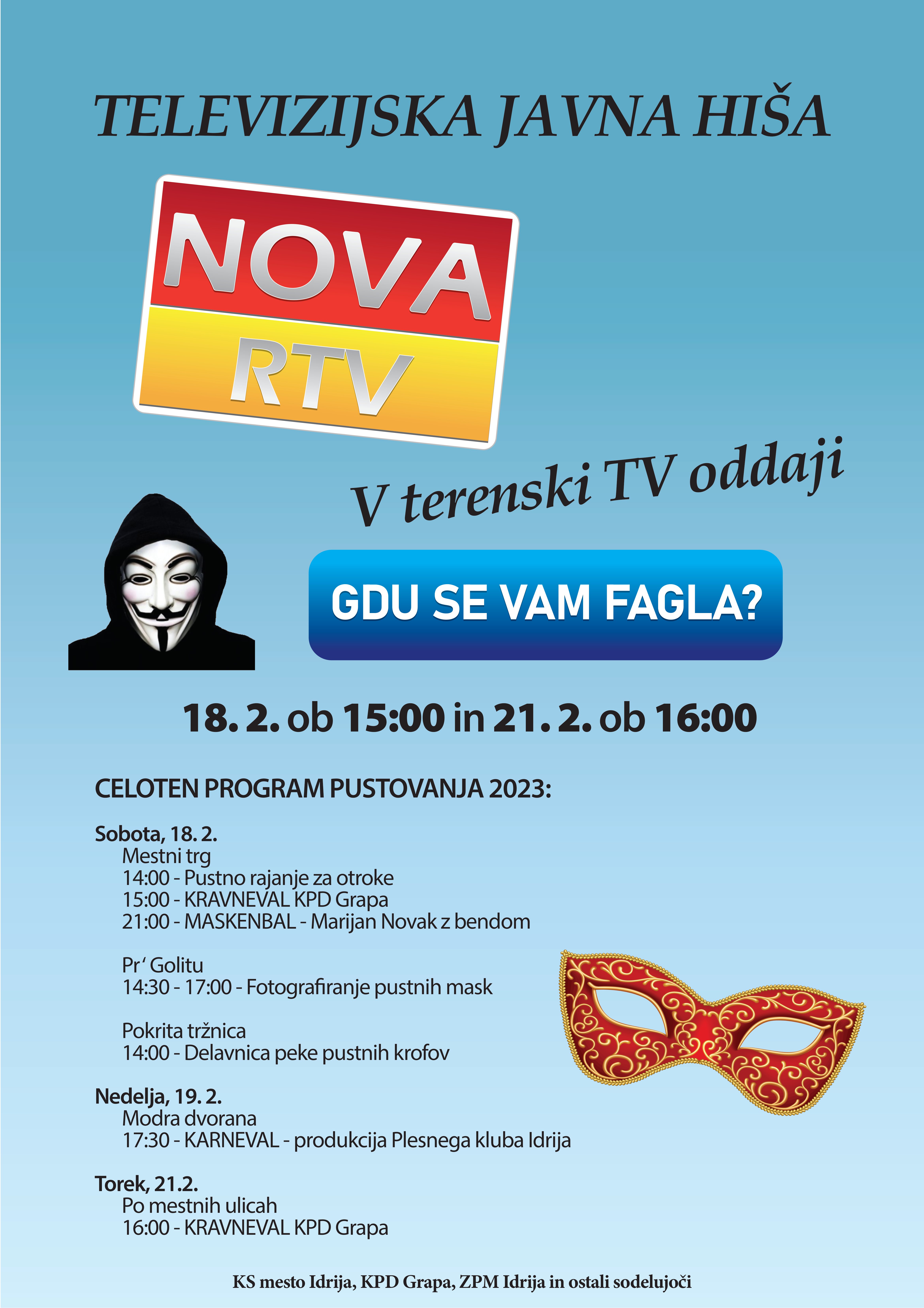 Krawneval 2023: sobota 18.2.2023 ob 15h, torek 21.2.2023 ob 16h na placu !